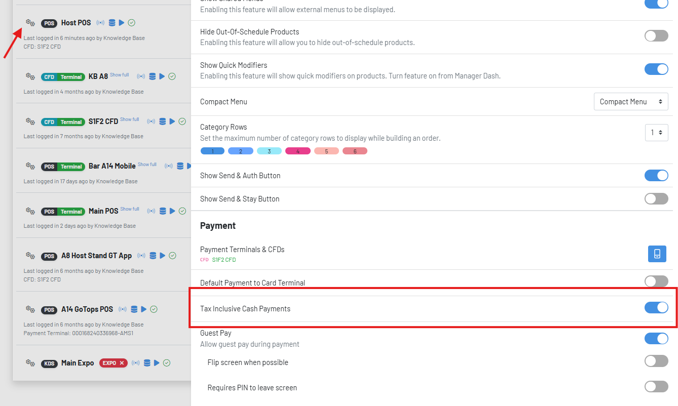 Cash tax-inclusive is a display specific setting. You can have some displays running cash tax-inclusive and others not.